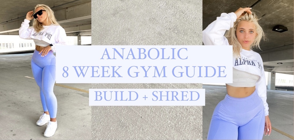 8 WEEK WORKOUT PLAN - 5 WORKOUTS PER WEEK SPLIT INTO MUSCLE SUBGROUPS. FULL SETS X REPS INCLUDED. CALORIE STARTER + PRE-WORKOUT TIPS.
